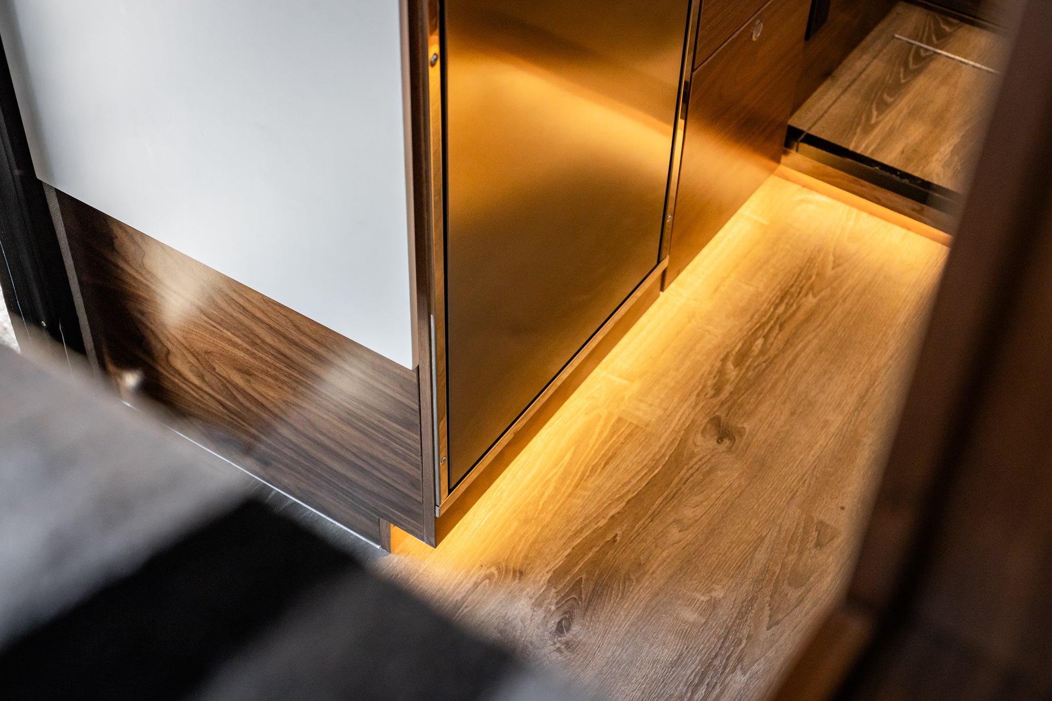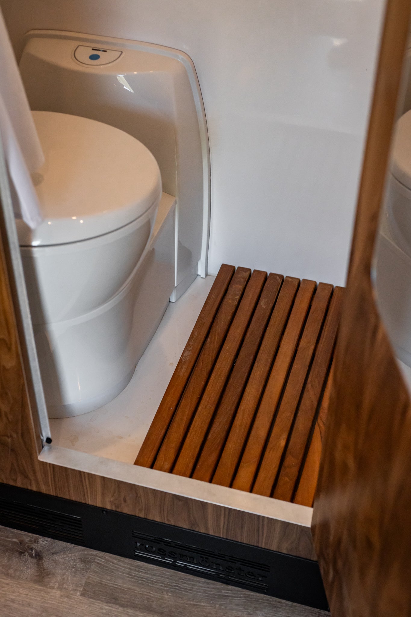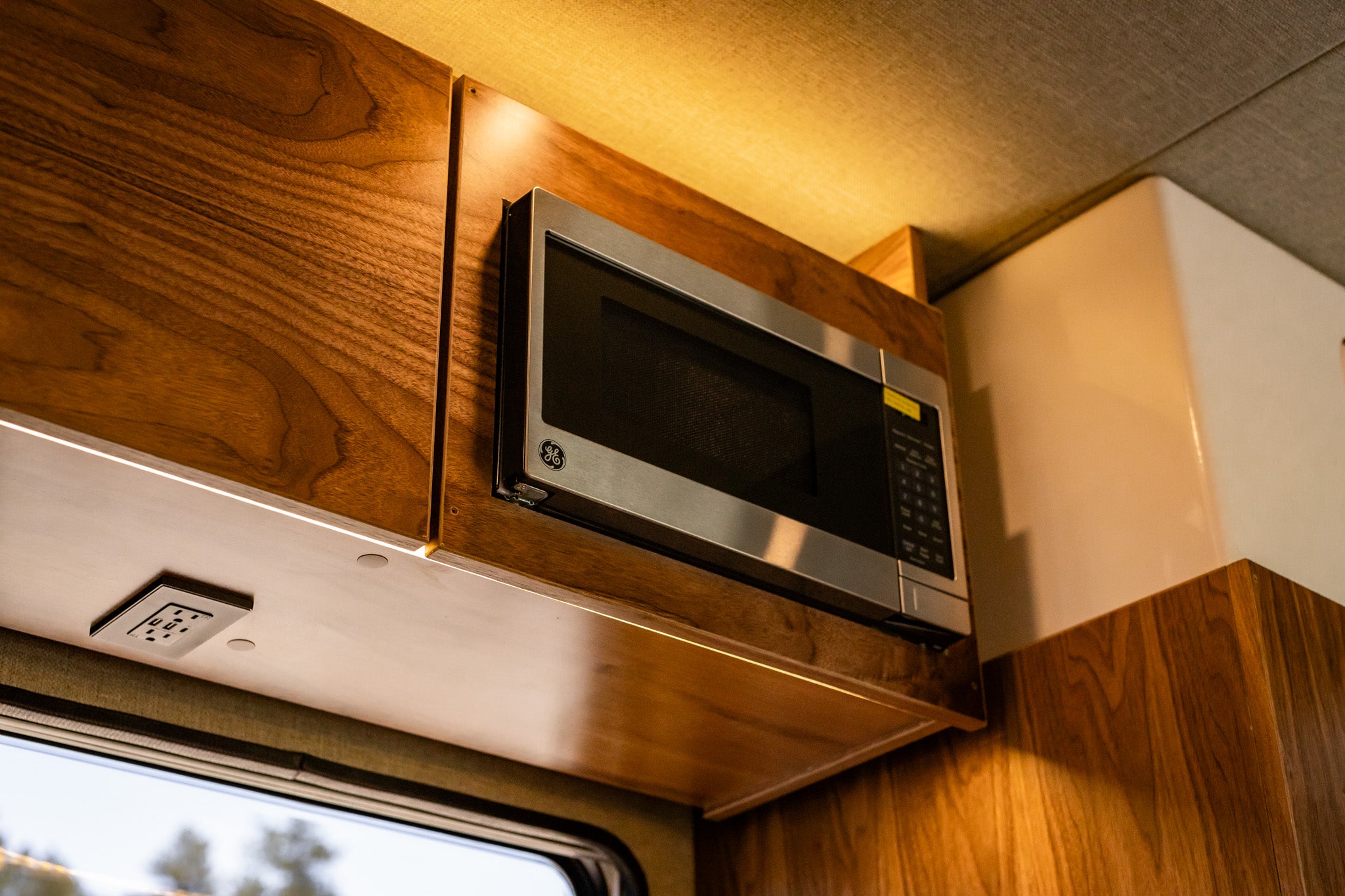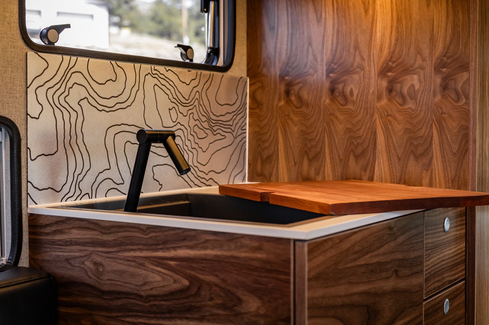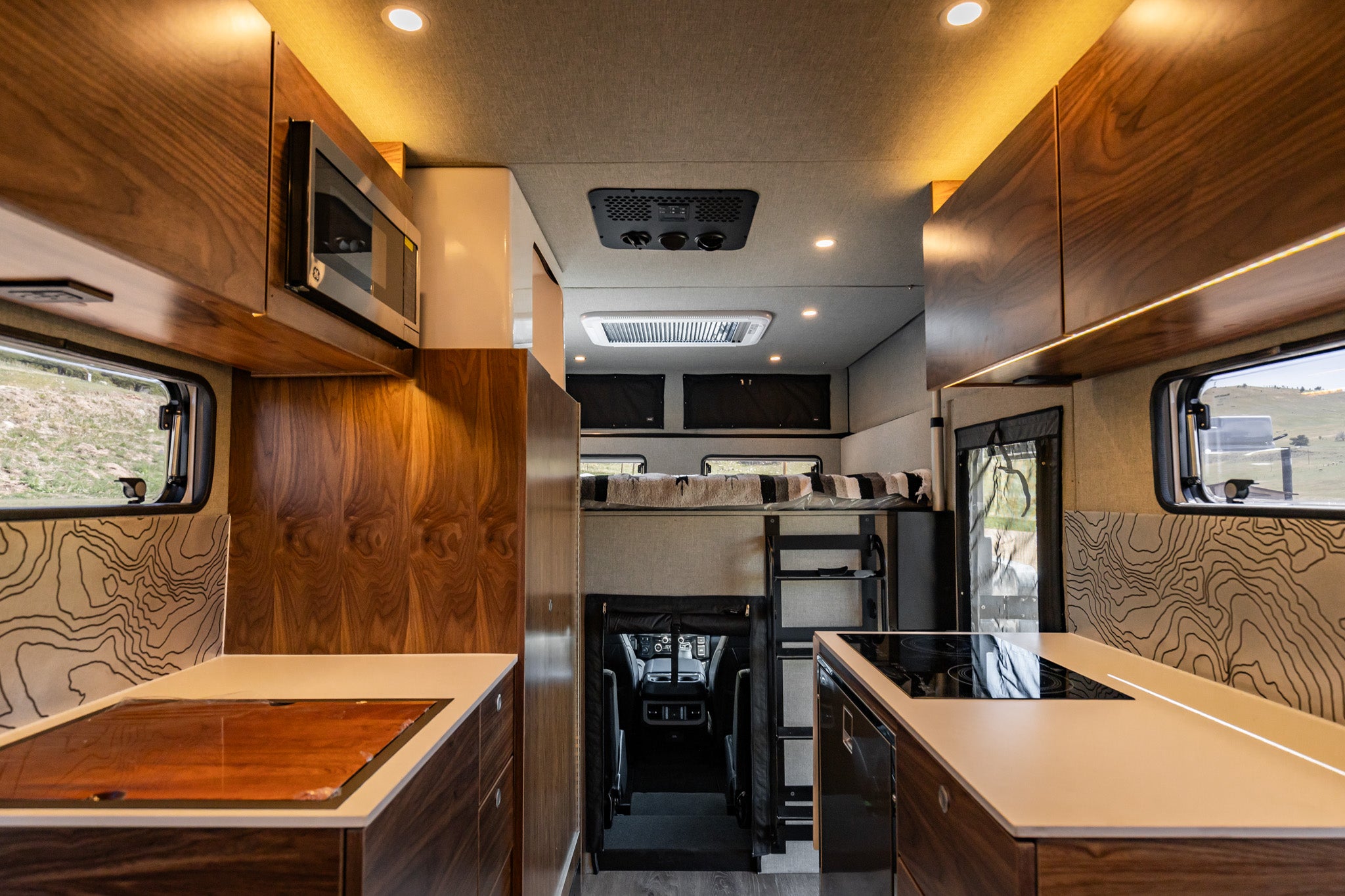 The skylight, vent above the bed, the 12V AC unit in the living space and Rixen heater altogether means you'll never not be comfortable in this rig.
