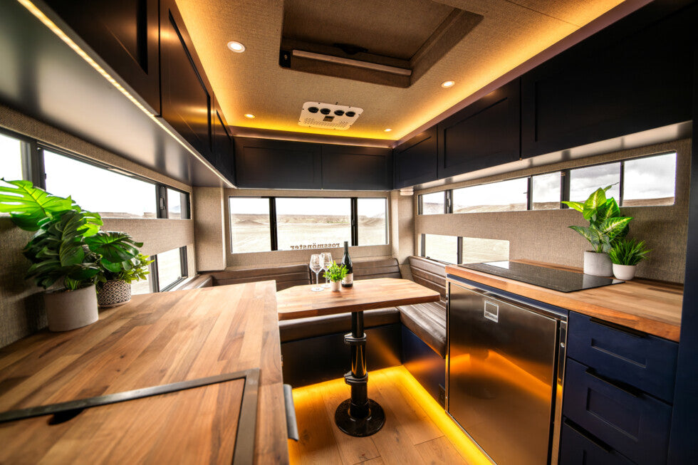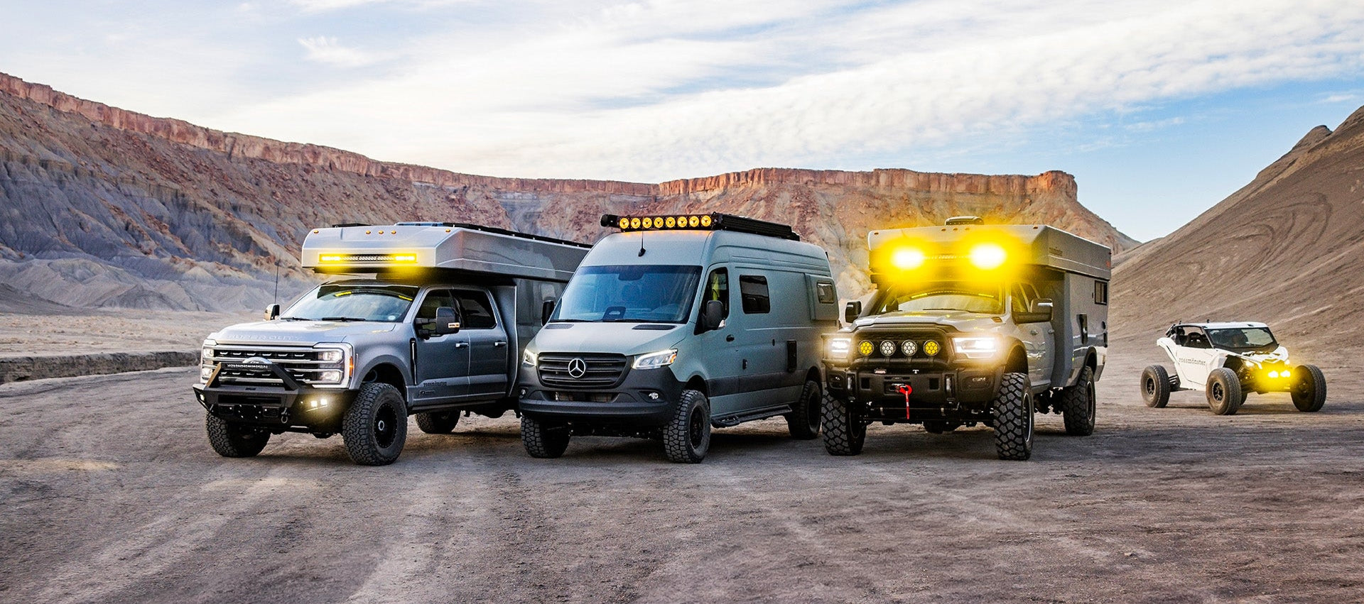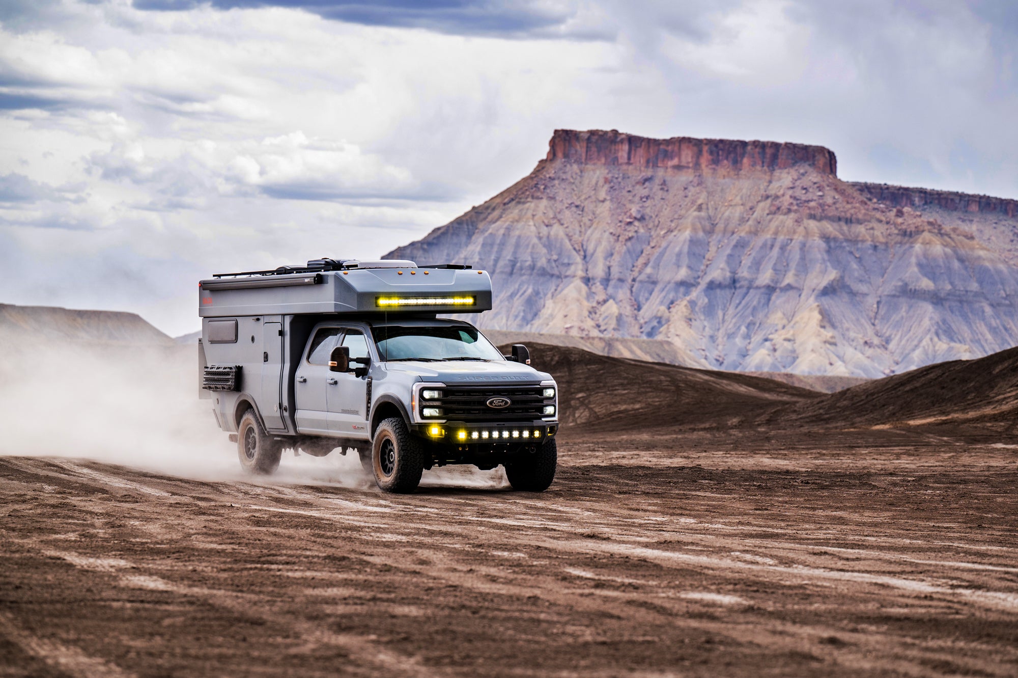 The Rossmönster Baja’s proprietary hard-walled pop-top truck camper enables a uniquely low center of gravity and wide track width for a driving experience that’s more akin to handling a standard F150 than a large RV plush with amenities. The Rossmönster Baja’s compact shell minimizes sway, making windy day driving a worry of the past, and stays within the length requirements for national park camping access.