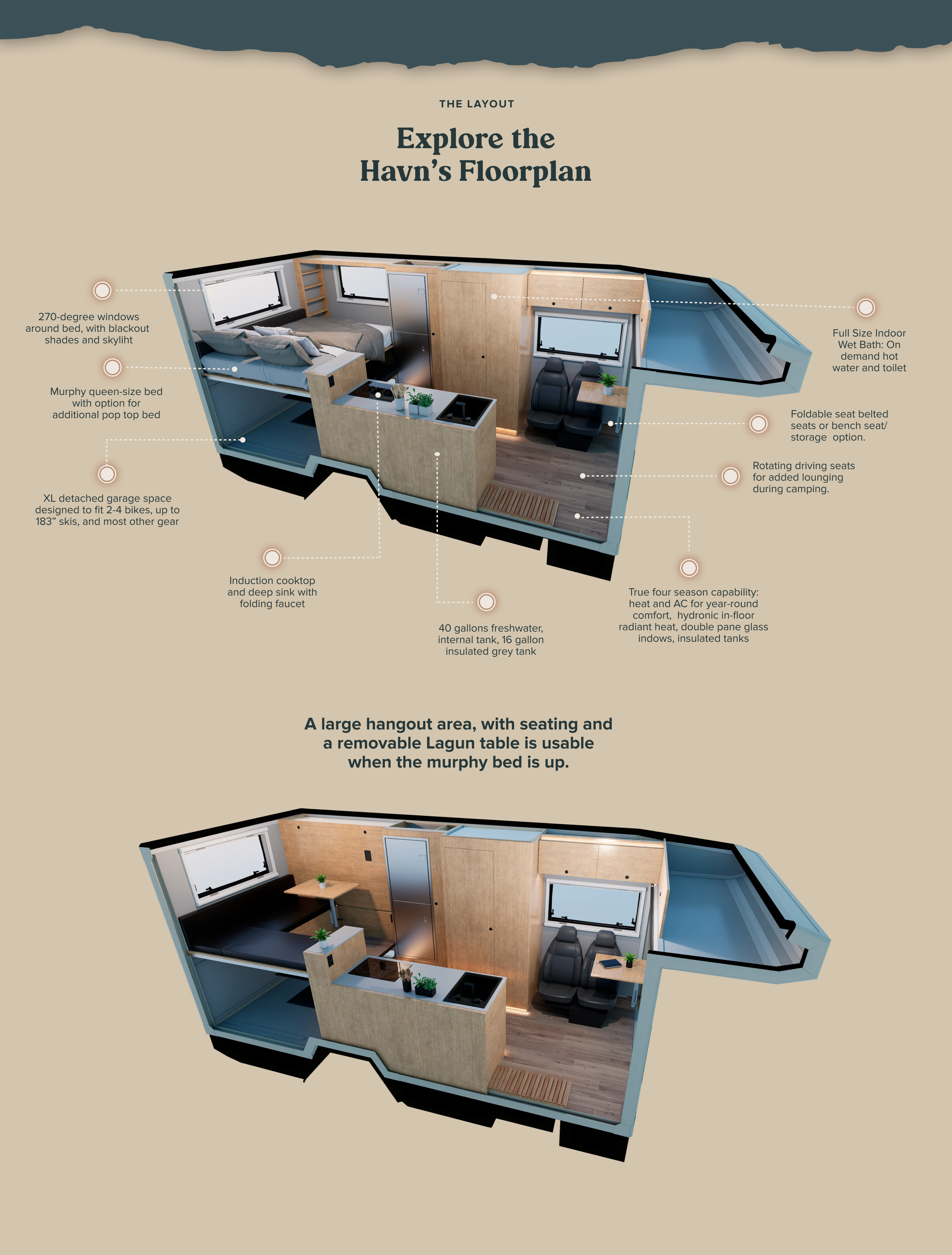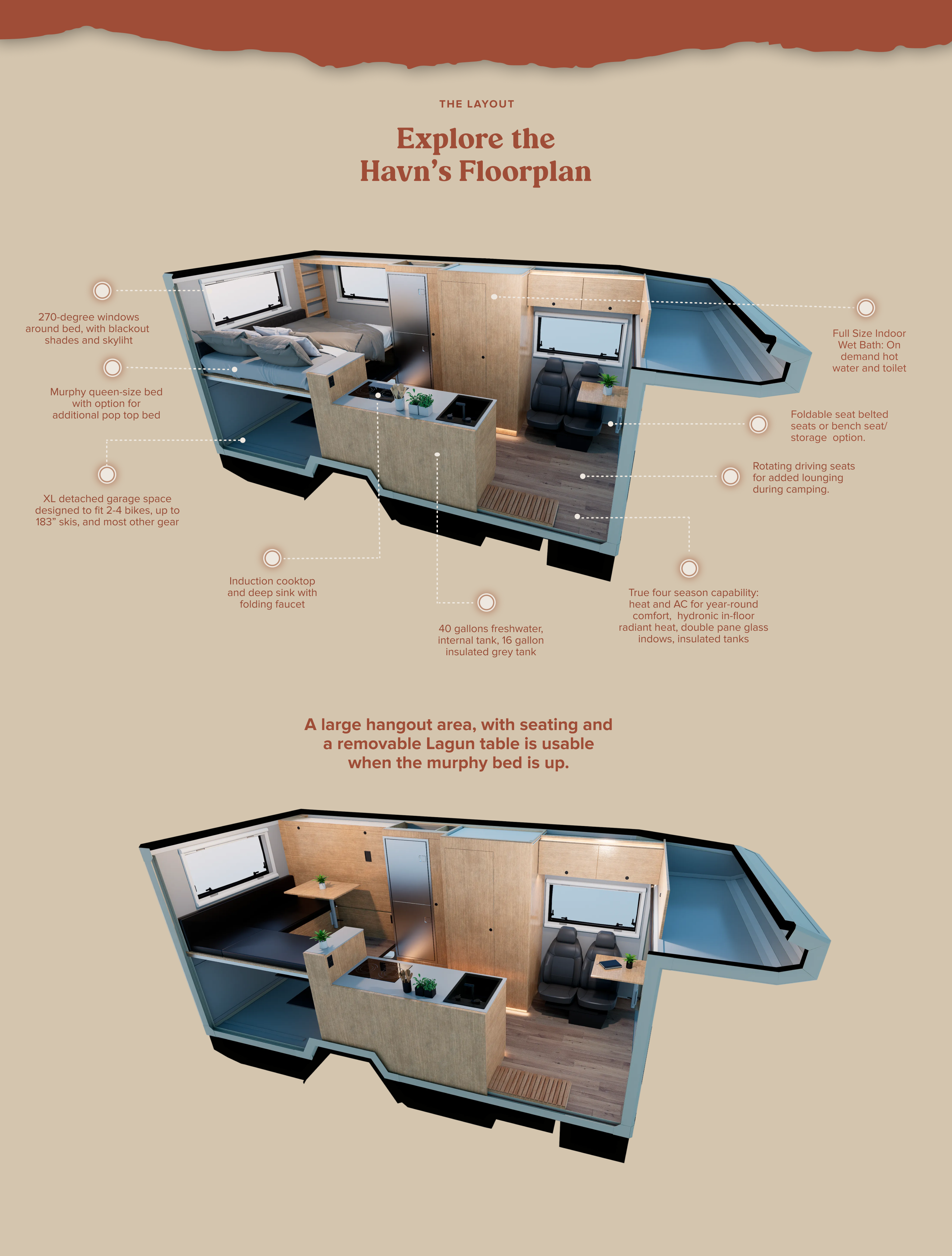 Rear water-tight garage, fits two bikes.