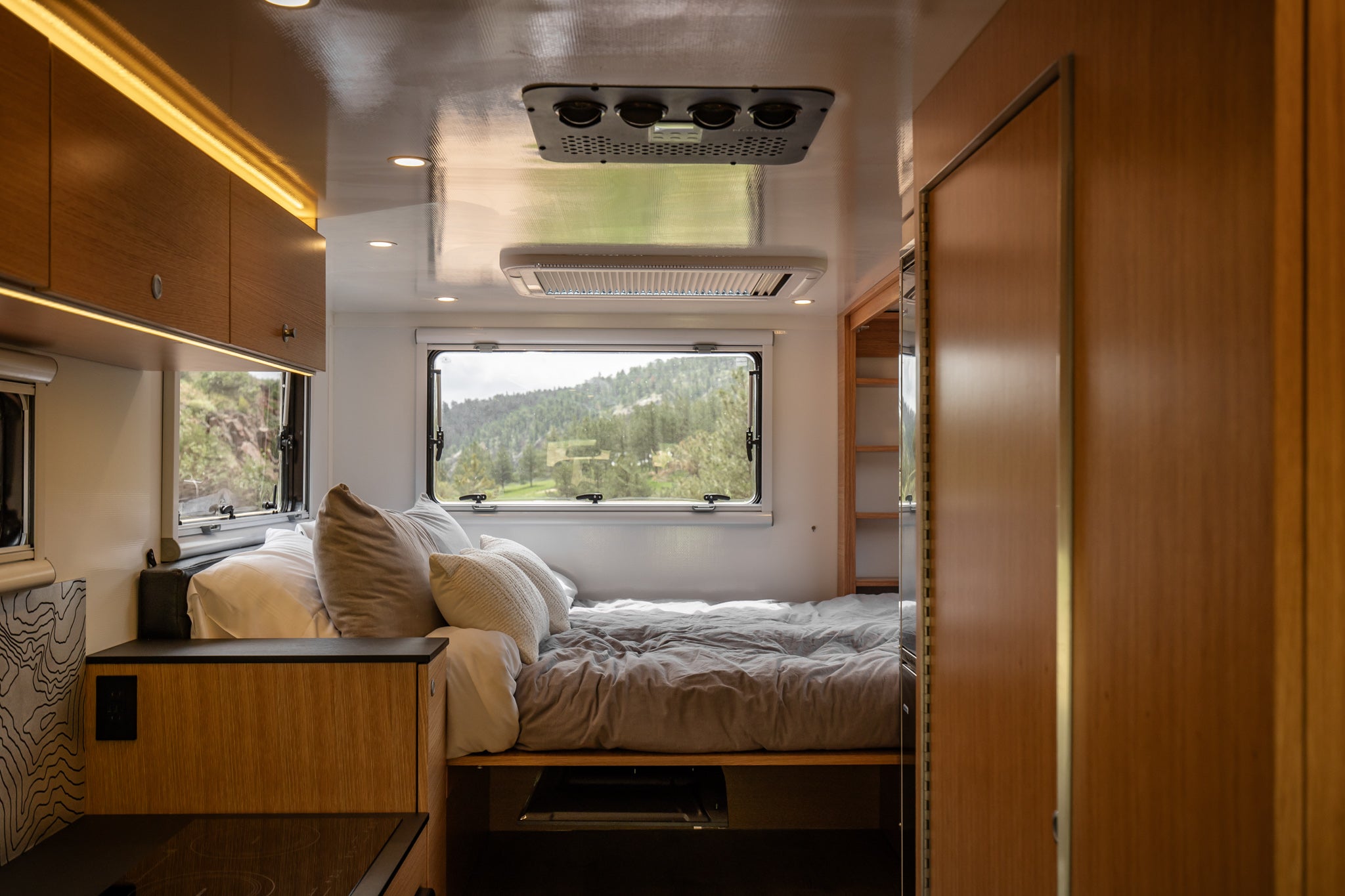 Walls, Roof, Floor: All panels—walls, roof, and floor—are this composite sandwich. There is no wood framing anywhere. Floors use a composite fiberboard (not plywood), which offers high strength at minimal weight.