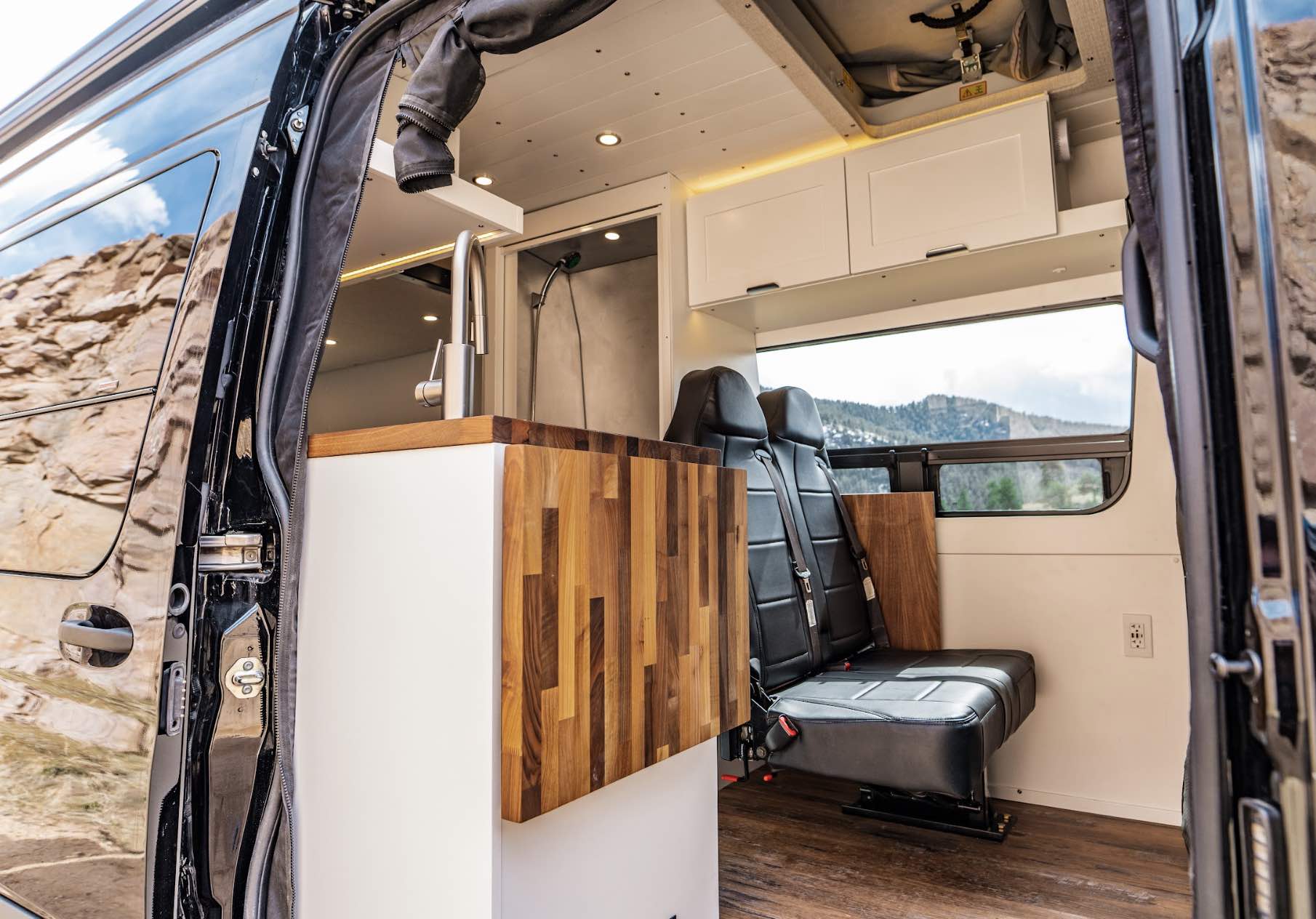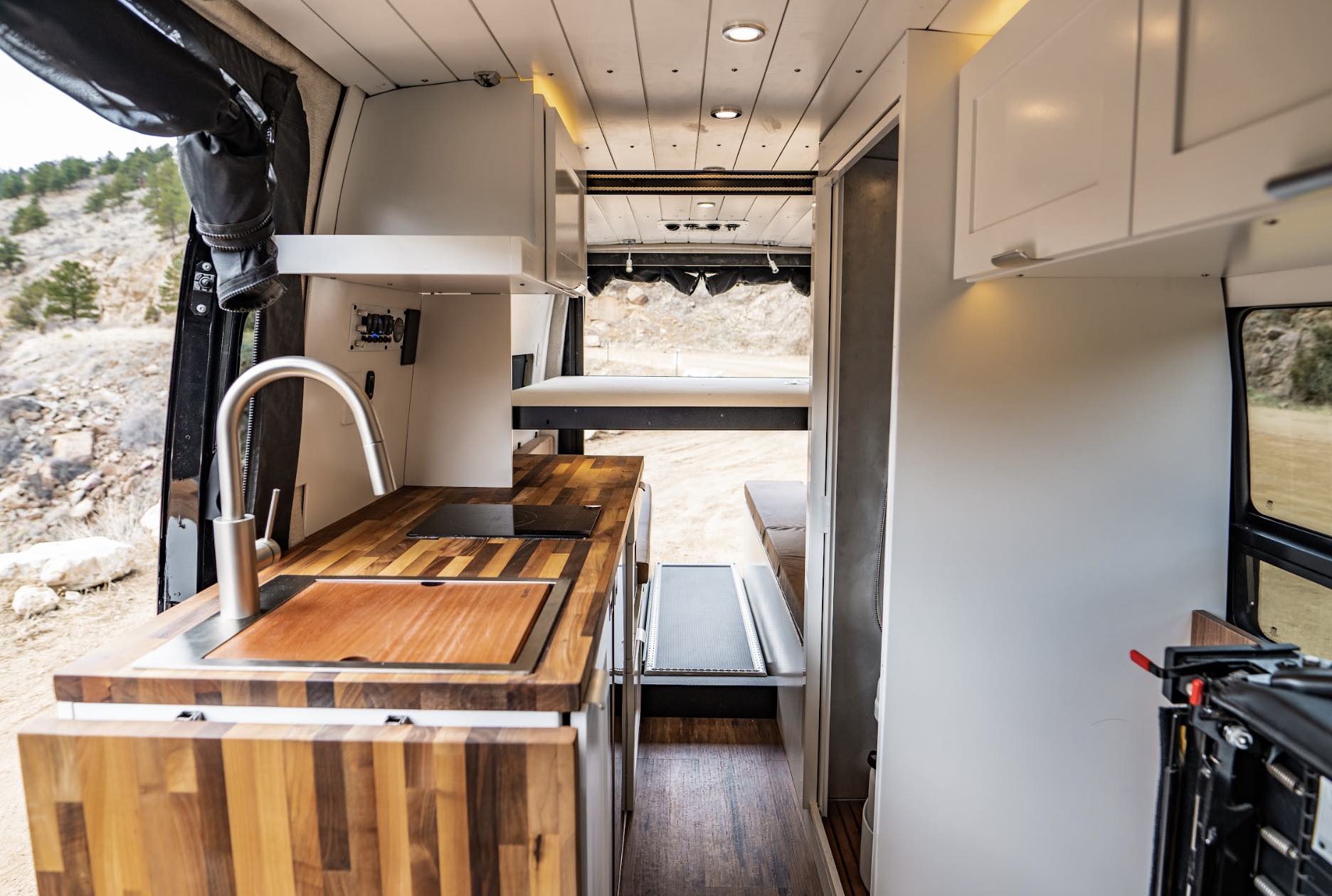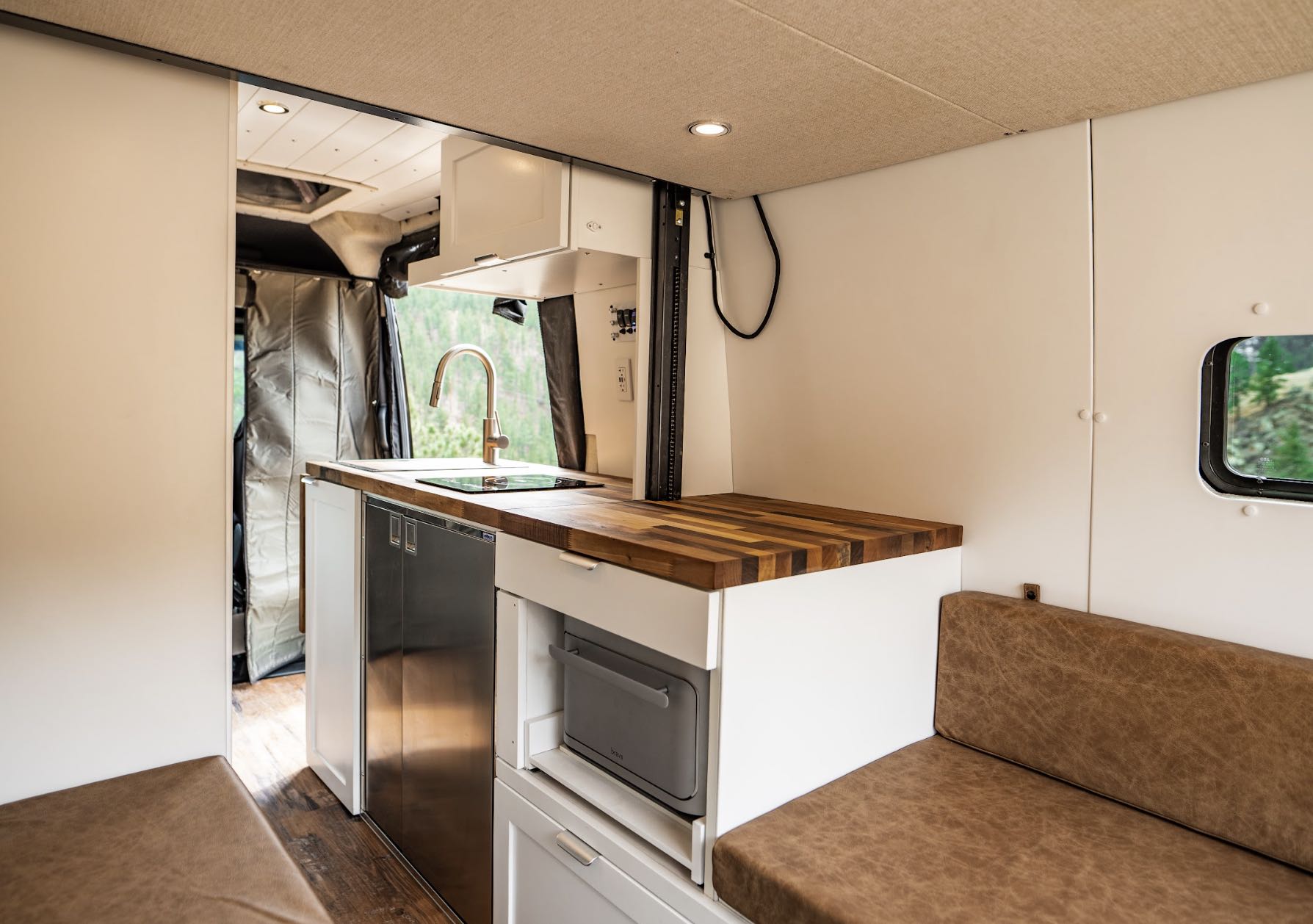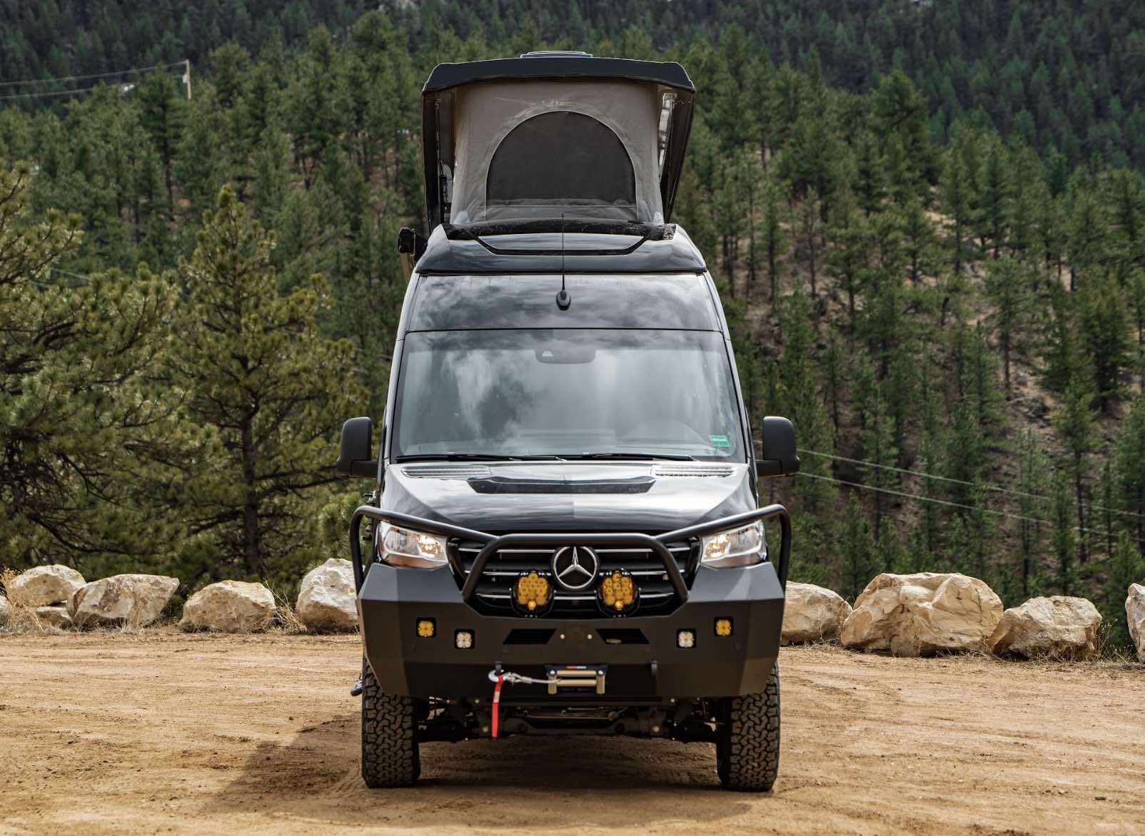 The Platte was designed to make the most of its 170″ wheelbase and be the ideal adventure rig for a crew. With an RRE Global Pop-Top and tons of exterior upgrades for additional hauling capacity, this adventure van is ready to take you wherever your heart desires.